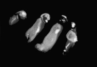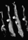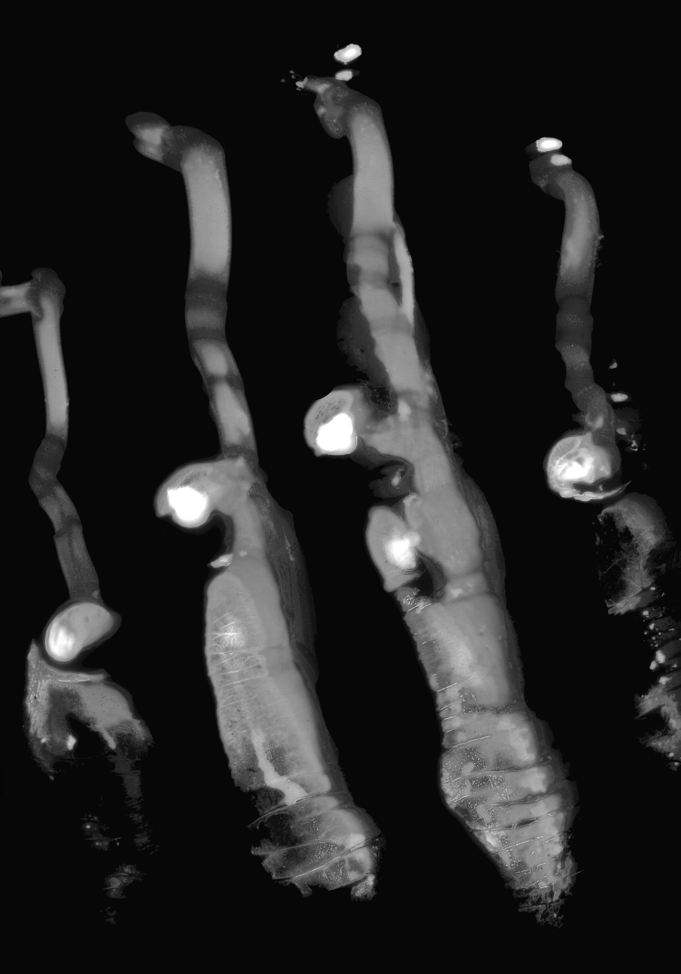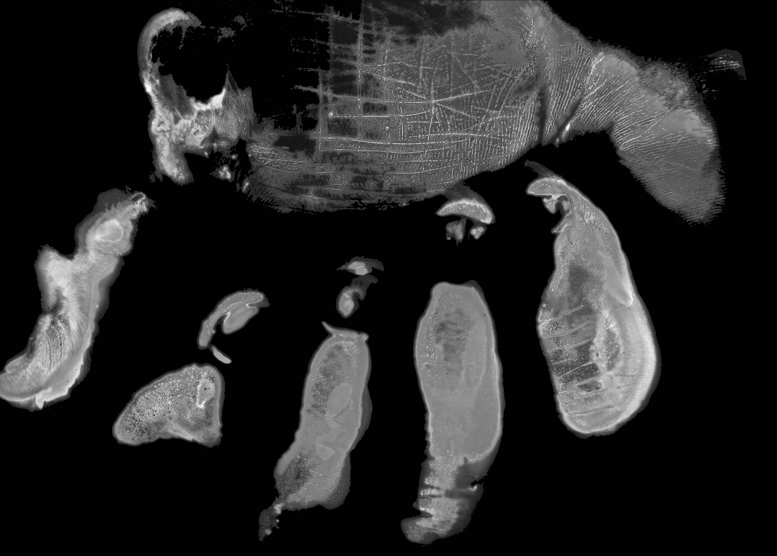 Les Mutations apportent un changement radical. L’Empreinte originale est numérisée puis tirée sur papier argentique dans un fort agrandissement qui la métamorphose, la transfigure littéralement.
