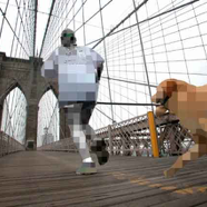 C’est également un travail sur la matière photographique. Après les “mutations” du grain d’argent (série des “Emprunts”), c’est au tour du “grain numérique” de se voir transfiguré. Que deviennent les personnages une fois “pixellisés” ? Quel rapport à l’espace occupent-ils ? Quel statut acquièrent-ils ?